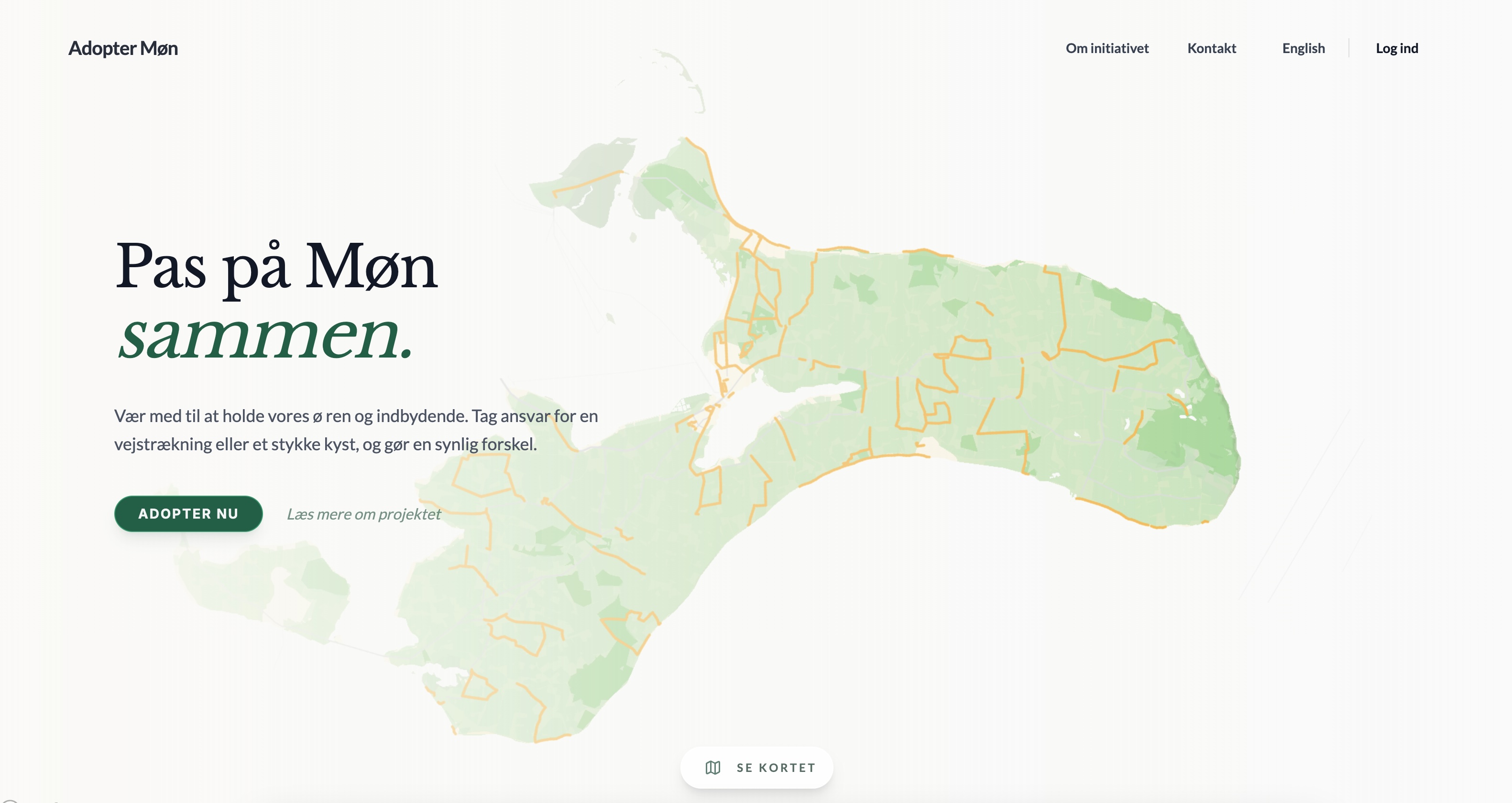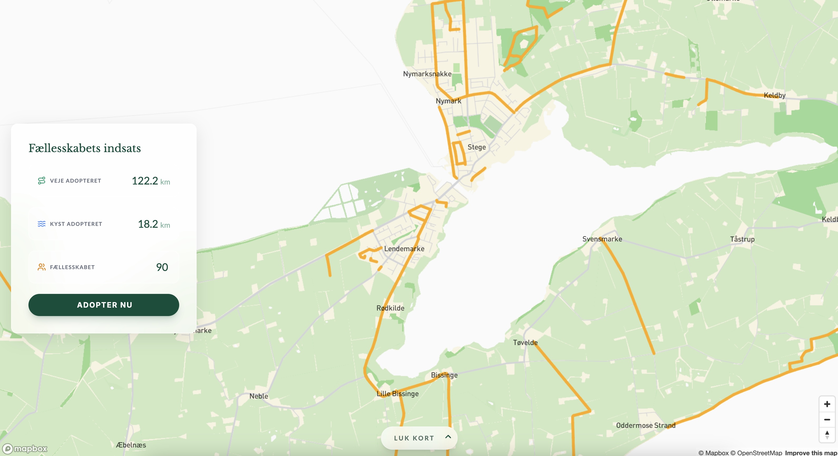 Adopter Møn facilitates coordination between the Møn Biosphere forening and local volunteers. The platform enables community members to take responsibility for maintaining specific sections of the island's infrastructure.